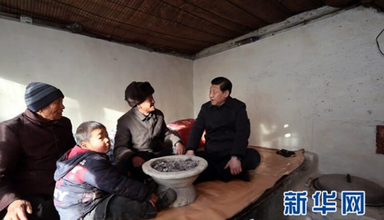 سنہ 2012 کے آخری چند دنوں میں شمالی چین میں سخت سردیوں کے موسم میں تقریباً منفی 10 ڈگری سینٹی گریڈ کے درجہ حرارت پر شی جن پھنگ نے شدید برف باری کے باوجود صوبہ حہ بے کی فوپھنگ کاؤنٹی کا دورہ کیا اور غربت کےشکار دیہات میں کسانوں کے گھر جا کر ان سے ملاقات کی۔ انہوں نے 700 کلومیٹر سے زیادہ کا سفر طے کرتے ہوئے دو دیہات کادورہ کیا۔